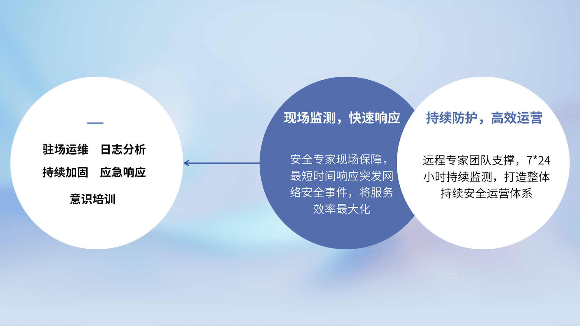 7X24小时持续监测安全事件,保持安全策略有效性,降低资产脆弱性风险,,,,精准拦截黑客攻击,,减少被黑客利用的机会,,第一时间遏制,,降低损失。。。